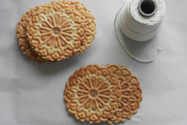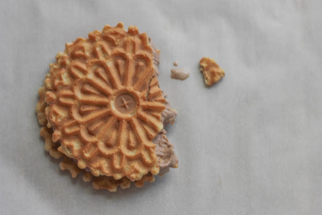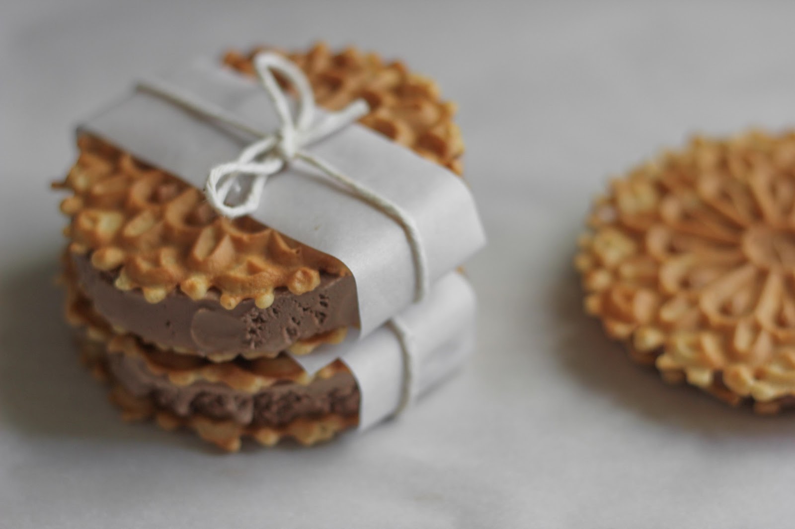i love love love pizzelle cookies and usually just eat them plain or with a glass of milk. i decided to try them out on ice cream sandwiches and not only did they turn out delicious, but were also so so pretty!